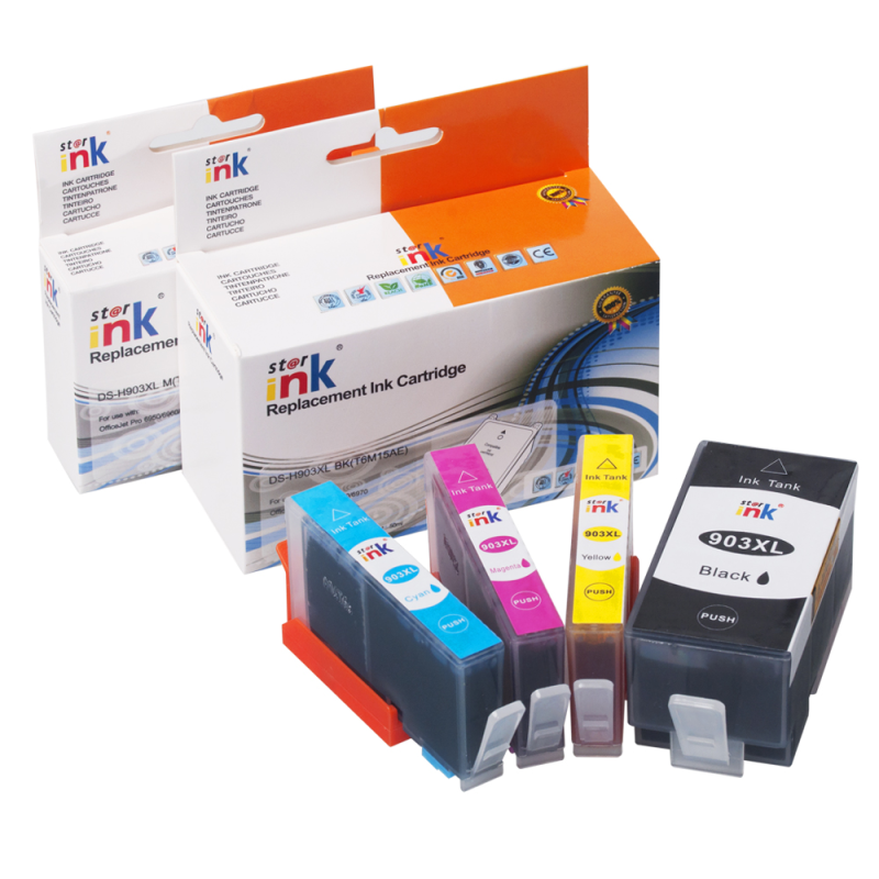 Starink sada náplní 1CC20AE - 903XL Bk/C/M/Y produkuje kvalitnú tlač porovnateľnú s OEM náprotivkami. Prijatím Starink výrobkov môžete využívať vysoko kvalitné tlačové výstupy za zlomok ceny.Ekosystém našich kompatibilných kaziet navyše prispieva k udržateľnému modelu tlače, ktorý je v súlade so súčasným ekologickým vedomím a rozpočtovými aspektmi.