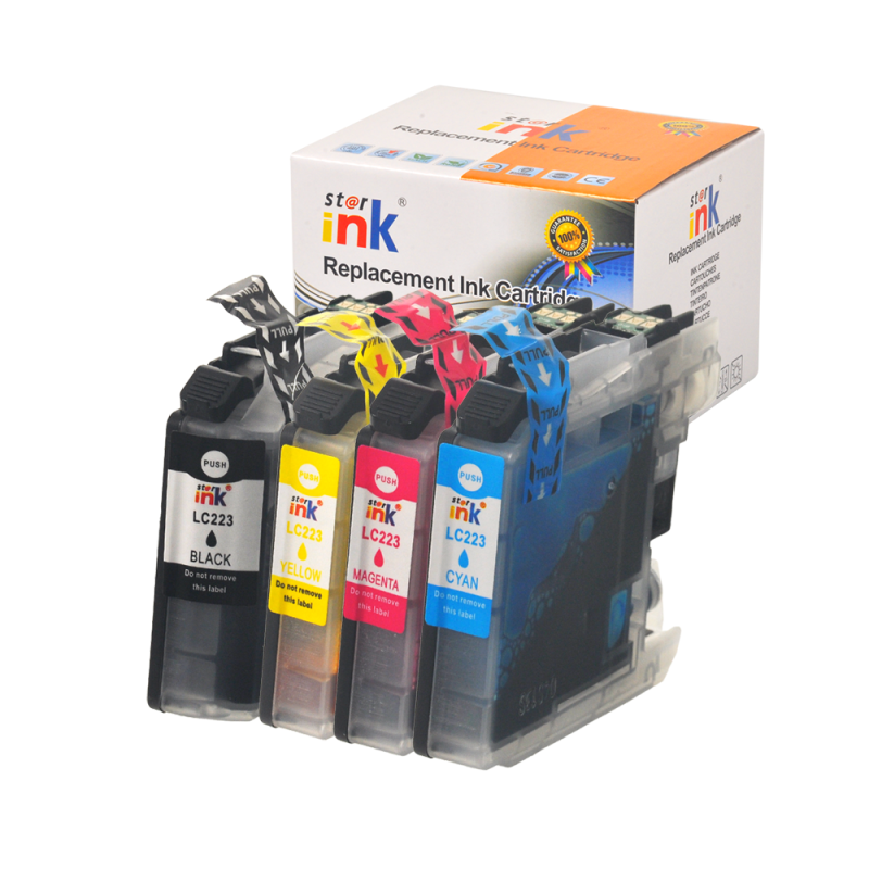 Starink sada náplní LC-223 BK/C/M/Y produkuje kvalitnú tlač porovnateľnú s OEM náprotivkami. Prijatím Starink výrobkov môžete využívať vysoko kvalitné tlačové výstupy za zlomok ceny.Ekosystém našich kompatibilných kaziet navyše prispieva k udržateľnému modelu tlače, ktorý je v súlade so súčasným ekologickým vedomím a rozpočtovými aspektmi.