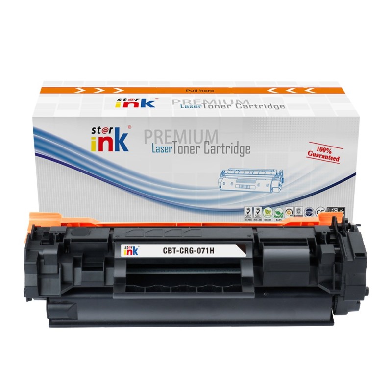 Starink toner CRG071H produkuje kvalitnú tlač porovnateľnú s OEM náprotivkami. Prijatím Starink výrobkov môžete využívať vysoko kvalitné tlačové výstupy za zlomok ceny.Ekosystém našich kompatibilných kaziet navyše prispieva k udržateľnému modelu tlače, ktorý je v súlade so súčasným ekologickým vedomím a rozpočtovými aspektmi.
